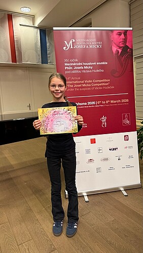 Maria Elisabeth Lange (10, Violine bei Michiko Feuerlein) gewinnt beim diesjährigen internationalen Josef Micka Wettbewerb in Prag den 2. Preis in ihrer Altersgruppe.