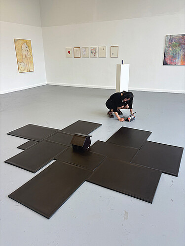 Was bedeutet es heute, sesshaft zu sein? Kann Zugehörigkeit, Sicherheit und Stabilität auch in einem nomadischen Lebensentwurf möglich sein? Und welche Bedeutung hat die Ehe im 21. Jahrhundert? Elf unterschiedlich große, schwarze Platten aus dunkler Schokolade und Wachs liegen auf dem Boden. Ihre geometrische Anordnung erinnert an Satellitenbildern landwirtschaftlicher Felder. In der Mitte steht ein kleines Schokoladenhäuschen leicht angekippt auf einem kleinen Stapel von Münzen. Was man nur kniend entdecken kann ist das darin versteckte rote Schokoladen-Schmuckkästchen mit einem goldenen Verlobungsring. Xatans nach Schokolade duftende Installation erzählt eine persönliche Geschichte über tiefe Verbundenheit und bittersüße Momente des Lebens. Es ist ein Nachdenken über Gegenwart, Tradition und individuelle Freiheit in den privaten Räumen subjektiver Erfahrungen.