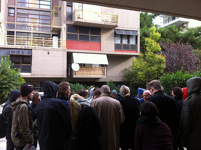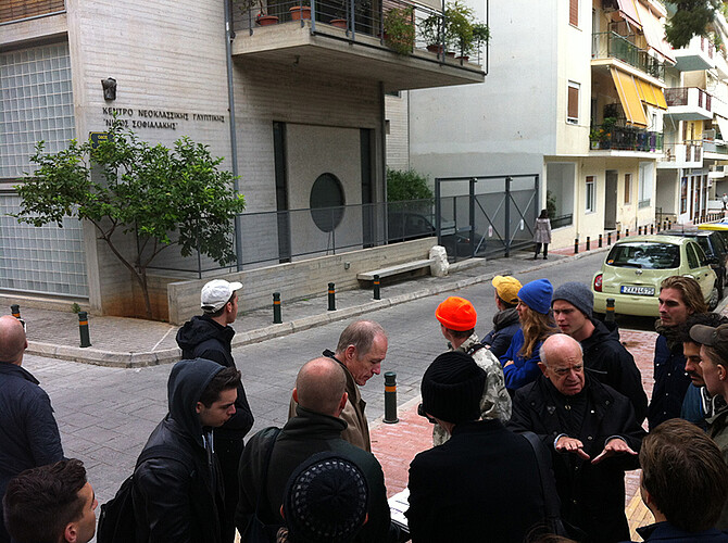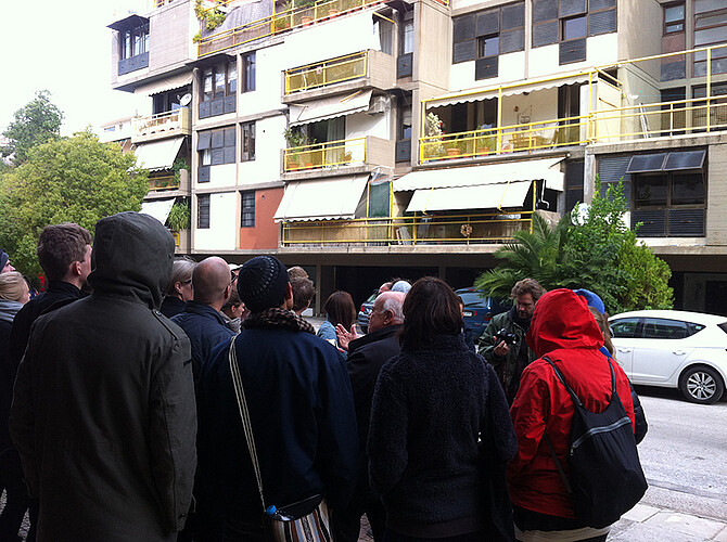 Themen: die Stadt in der Krise, Bautypus Polykatoikia, Ikonen griechischer Nachkriegsmoderne im Wohnungsbau, sowie Antike und Neoklassizismus. Tagesführungen von Panos Dragons, Minas Papadakis, Tassos Biris. Bürobesuche bei Point Supreme und A66 (Suzana und Dimitri Antonakakis).