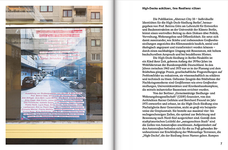 Die High Deck Siedlung in Neukölln, entstanden in den 1970er Jahren ist ein -fast- typisches Kind seiner Zeit. Interessant und in Berlin einzigartig ist das für Fahrverkehr und Fußgänger getrennte Erschließungssystem, das der Siedlung den Namen gibt und zweifellos interessante architektonische Räume und Möglichkeiten aufmacht. Allerdings ist die Orientierung durch die gleichförmige und schematische Anordnung der Wohnbauten in der Anlage schwierig. Wie können in der High Deck Siedlung individuelle Identitäten entstehen? in Zusammenarbeit mit der städtischen Wohnbaugesellschaft HOWOGE