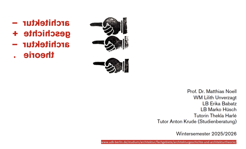 Die Anmeldung zu den Lehrveranstaltungen im WiSe erfolgt grundsätzlich online über Moodle. BA-Studierende (ab 5. Semester) und MA-Studierende wählen bitte ihr Projekt über Moodle aus: Projektwahl Entwurf WiSe 25/26. Die Projektwahl ist am 13.10.2025 von 13:00 bis 16:00 Uhr freigeschaltet. Anmeldung in Moodle erfolgt über die OASE-Zugangsdaten: OASE Loginname ohne Zusatz "@udk-berlin.de" und Passwort. Ausschließlich Erasmus- und Studierende ohne UdK-Emailadresse kontaktieren uns bitte hier.