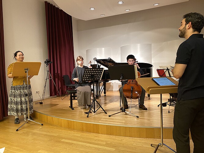 Die Sänger*innen werden dazu ermutigt, an Projekten mit den zahlreichen Ensembles der Universität zu arbeiten.