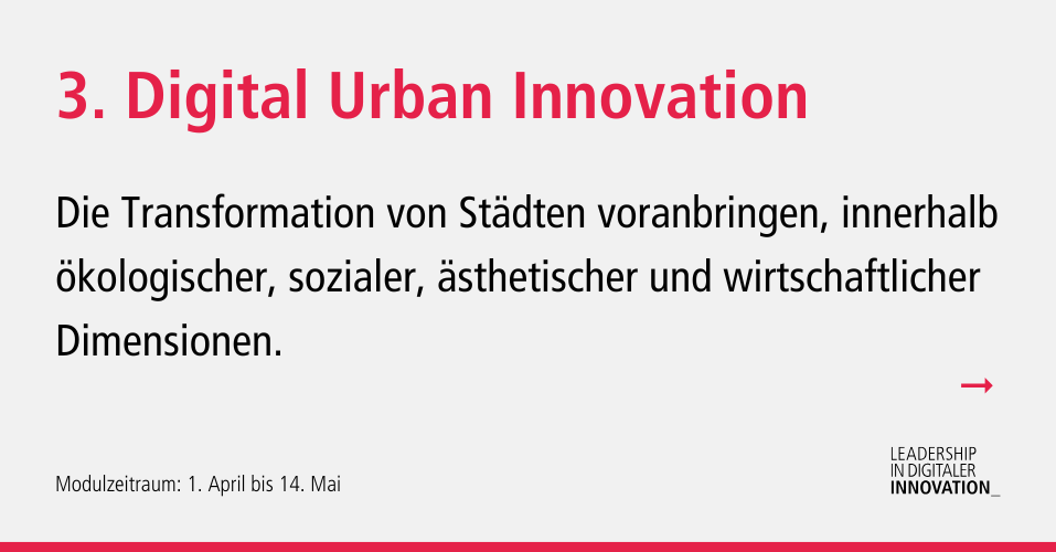 Leadership in digitaler Innovation ist ein berufsbegleitender Masterstudiengang, der unsere Studierenden dazu befähigt, digitale Transformationsprozesse professionell anzugehen und umzusetzen.