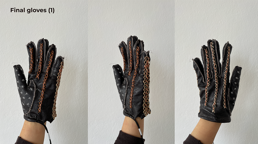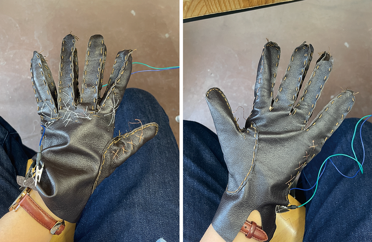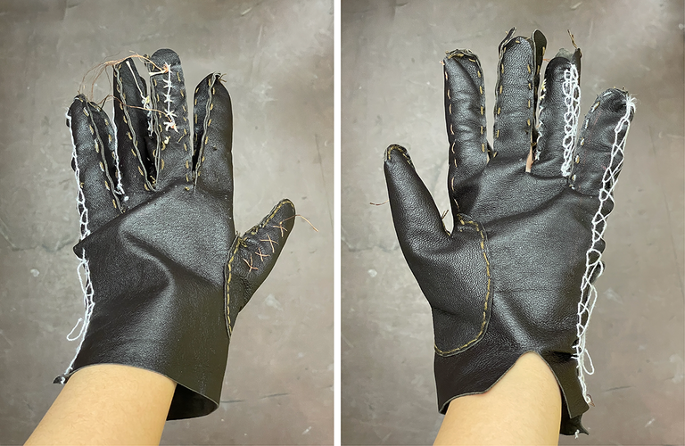 After iterating through multiple approaches, we successfully developed two custom-sized leather gloves—one larger and one smaller—to accommodate different hand sizes. We chose leather as the primary material because it offers both flexibility and stability while allowing easy attachment of components.