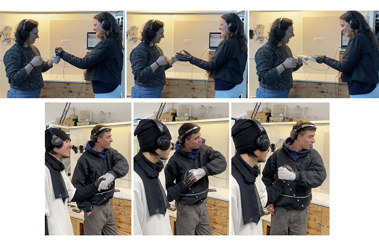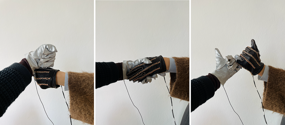 Each person wearing a glove carries their own unique sound. When two people shake hands, their sounds blend in real-time, creating a collaborative audio experience. The intensity, duration, and movement of the handshake shape the resulting sound, capturing the nuances of social interaction. Different gestures—such as a fist bump, high five, or pinky promise—produce distinct sound effects, allowing users to personalize their connections through touch.