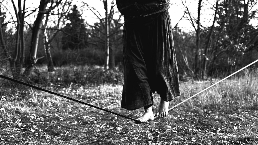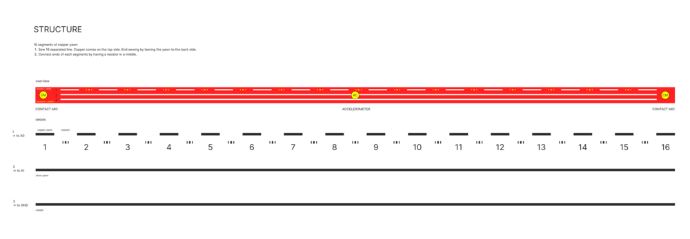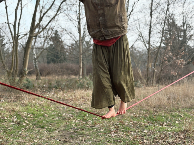 This project explores the dynamic interaction between the human body, a slackline, and generative sound, transforming movement and touch into an expressive sonic experience. By integrating conductive thread—silver and copper yarn, as well as segmented copper yarn with resistors sewn directly onto the slackline—the line itself becomes a responsive sensor.
