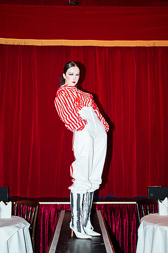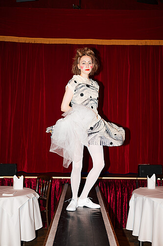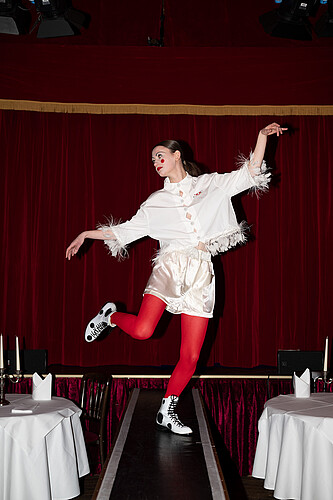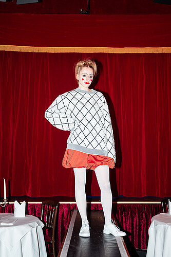 The show is over, the audience is gone. And if the audience stays away, so does the money. The “House of Fools” collection takes a look behind the scenes of an old, once large and respected circus company and its old, broken costumes, sad faces and tells of the harsh reality of a circus after its golden age. Modern silhouettes, elaborate handicrafts and a dirty, broken aesthetic come together, contrasts and patterns are reinterpreted. The result is a playful, detailed collection that is funny and sad at the same time.