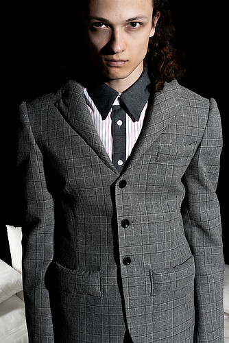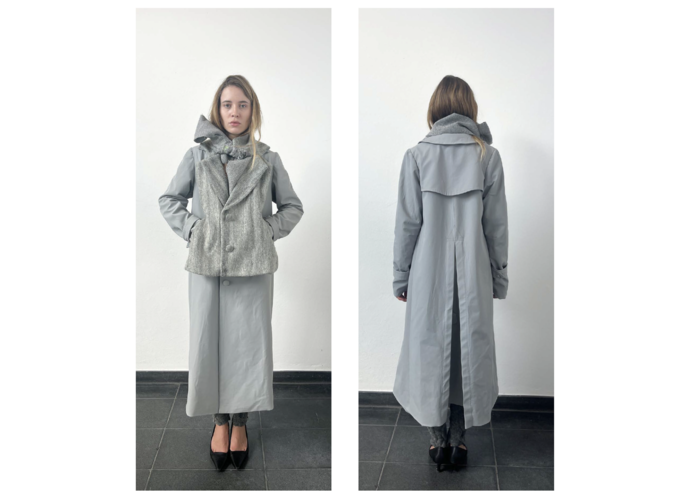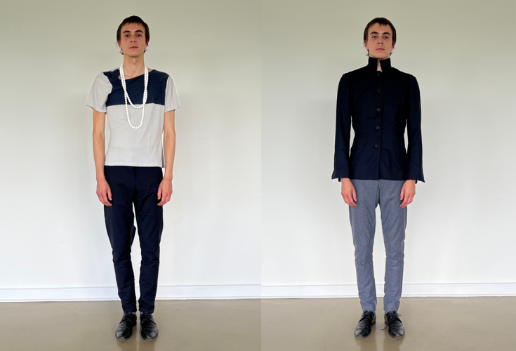 Gradlinige Schnitte treffen auf subtile Ironie und spielerische Details, die gängige Vorstellungen von klassischer Männermode herausfordern. In ihrer aktuellen Kollektion, entstanden im Rahmen des Modedesign-Studiums an der UdK Berlin, rekonstruiert die Designerin Elemente wie Kragen, Revers, Manschetten und Taschen neu – in präzise kartierten Partien. So entsteht eine frische, unkonventionelle Interpretation des Anzugs, die formale Strenge mit Leichtigkeit und Humor durchbricht. Die Kollektion erö ffnet eine zeitgemäße Perspektive auf Tailoring und verleiht dem klassischen Herrenanzug eine junge, eigenwillige Stimme.