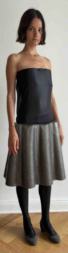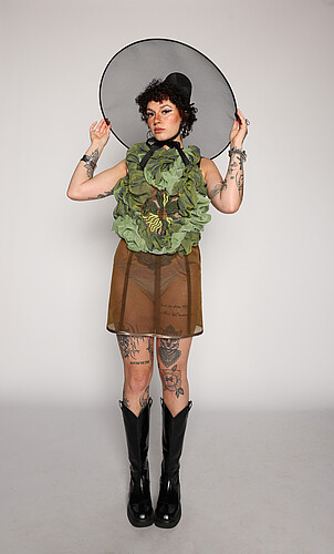 Die sechsteilige Look-Serie beschäftigt sich mit der visuellen Sprache der 1950er Jahre – einer Dekade, die modisch stark von klar definierten Silhouetten, normierten Schönheitsidealen und einer betonten Feminität geprägt war. Die ikonischen Formen dieser Zeit – etwa die Sanduhr-Silhouette mit schmaler Taille, betonten Hüften und breiten Röcken – stehen nicht nur für ein ästhetisches Ideal, sondern auch für gesellschaftliche Kontrolle, Nachkriegsordnung und eine Rückkehr zu „weiblichen“ Rollenbildern. Dieses Projekt greift jene Formensprache auf, verschiebt jedoch Volumen und Schwerpunkte bewusst an andere Stellen des Körpers – weg von Taille und Hüfte, hin zu neuen, ungewohnten Zonen. Durch das Versetzen von Volumen oder das Zerschneiden klassischer Proportionen entstehen Silhouetten, die vertraut und fremd zugleich wirken. Der Körper wird dadurch nicht mehr idealisiert, sondern neu interpretiert und irritierend inszeniert.