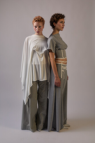 I see the "in-between" not only as a physical or aesthetic concept, but also as a metaphor: a space women have historically occupied in patriarchal structures — present, but often invisible, constrained, or rendered secondary. Inspired by Invisible Women by Caroline Criado Perez, which exposes how data bias marginalizes women in public, economic, and professional life, I want to use fashion to visibilize this overlooked presence and the labor of navigating systems never designed for us.