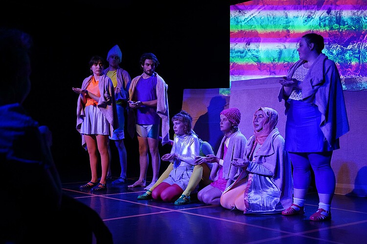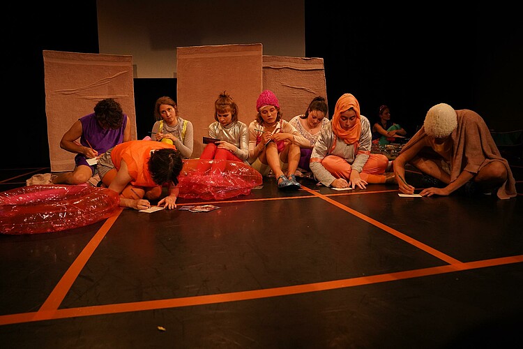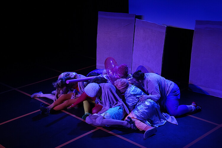 KONZEPT, KOSTÜM & PERFORMER*INNEN Donji Angaji, Marie Baumgarten, Paula Heckmann, Joschik Hildebrandt, Nicola Kripylo, Silvia Medina, Tonia Nacke, Esma Özcelik, Jolan Porst, Jannis Roß, Pauline Warneboldt / KÜNSTLERISCHE LEITUNG Elly Jarvis / PRODUKTIONSLEITUNG Melanie Hinz / MUSIK Ada M. Helene, Helene Brack / LICHT Britta Lohmeyer / REGIEASSISTENZ Antonia Şelale Schwertheim