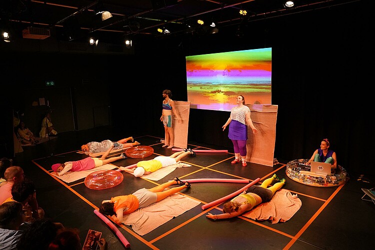 Im Rahmen einer kollektiven Theaterrecherche des Masterstudiengangs Theaterpädagogik stellen wir Fernurlaube, Naherholungen und Sehnsuchtsorte auf den Prüfstand – und uns selbst die Frage, wonach wir uns eigentlich sehnen, wenn wir den nächsten Urlaub planen. Die Plakate von Inselparadiesen blättern ab, das Wasser ist getrübt und die Haut pellt sich. Darunter schwimmt Ungeahntes.