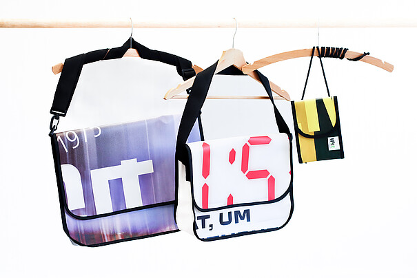 Taschen und Mappen, hergestellt aus Bannerplanen vergangener Produktionen