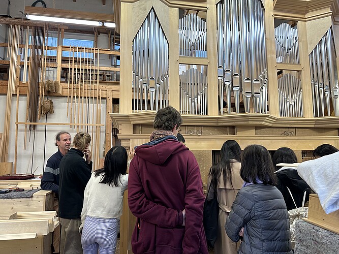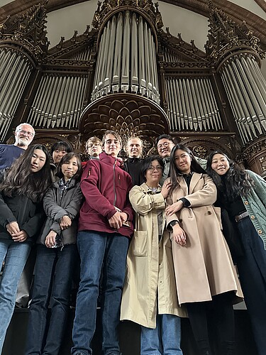 Organisiert, begleitet und insbesondere musikalisch bereichert wurde unsere Reise durch Prof. Mari Fukumoto und Prof. Henry Fairs. Besonderer Dank gilt jedoch auch allen beteiligten Kirchenmusiker*innen und Mitarbeitenden der Orgelbauwerkstatt Wegscheider, die uns mit viel Zeit und Leidenschaft in die Besonderheiten ihrer Instrumente eingeführt haben. Letztlich war unser Aufenthalt nicht nur fachlich, sondern auch menschlich ein voller Erfolg für alle Beteiligten.