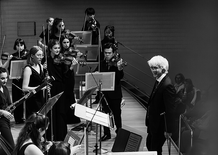 Das Symphonieorchester der UdK Berlin spielte am Freitag den 23. Mai 2025 unter der Leitung von Giovanni Antonini, der als Gründer und Leiter des weltberühmten Barockensembles Il Giardino Armonico eine besonders hörenswerte Interpretation der Sinfonia concertante versprach.