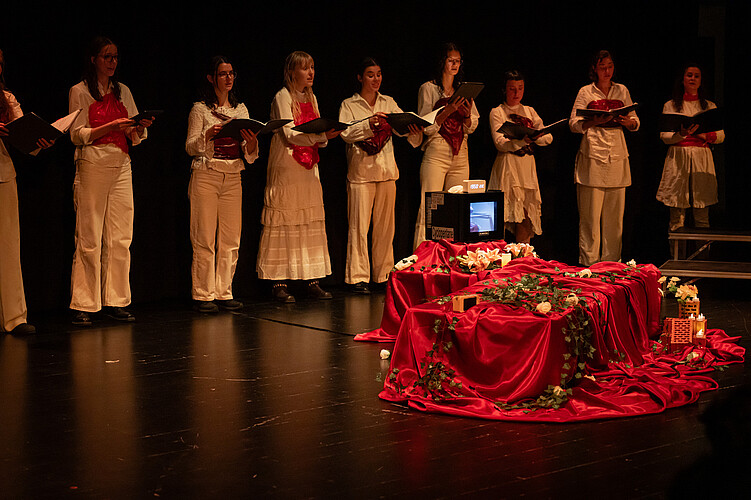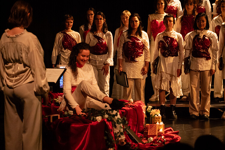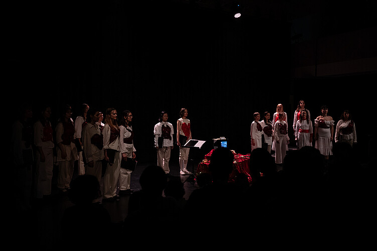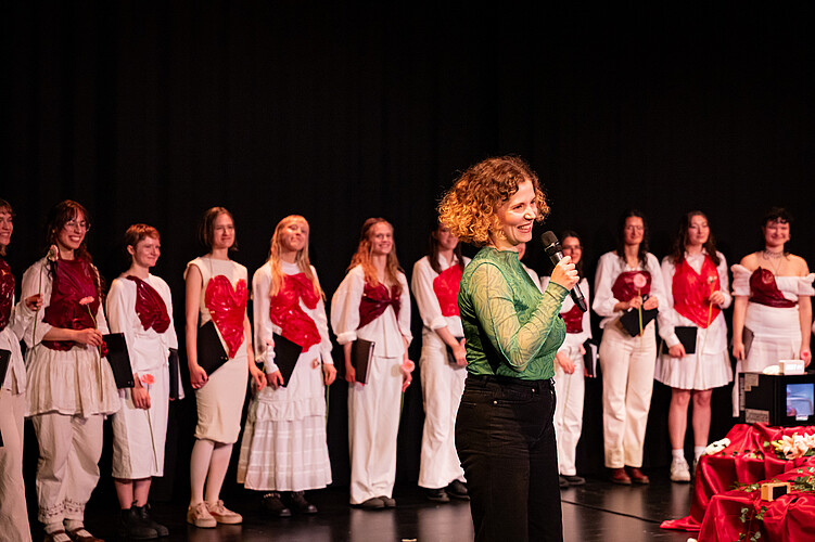 Unter der Leitung von Maike Bühle singen Musikstudentinnen unterschiedlicher Studienrichtungen mit Begeisterung und Engagement Werke verschiedener Epochen aus dem In- und Ausland.