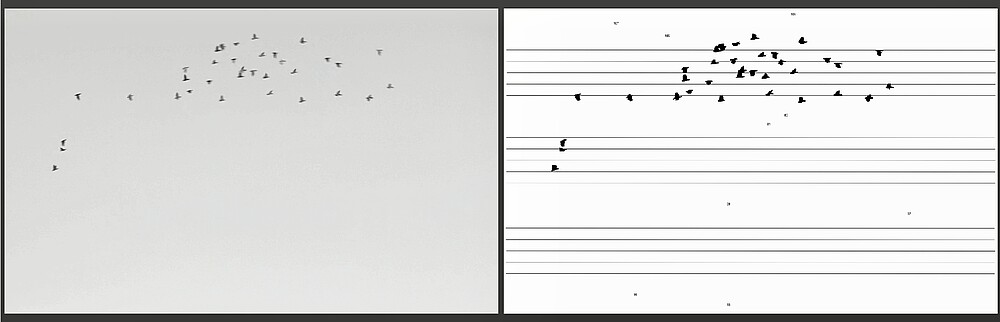 Die Arbeit flows ist eine Klang-Video-Installation in Echtzeit, die die Bewegungen von Stadtvögeln in melodische Strukturen übersetzt. Die Flugbahnen, die Geschwindigkeit und die Dichte der Vögel werden direkt auf Klang abgebildet und erzeugen so ein sich kontinuierlich wandelndes Hörerlebnis. Unvorhersehbar und einzigartig bringen die Bewegungen der Vögel singuläre, nicht reproduzierbare Klangereignisse hervor. Die Arbeit erforscht zeitliche und ökologische Ebenen, die im urbanen Raum jenseits einer menschenzentrierten Wahrnehmung eingeschrieben sind.