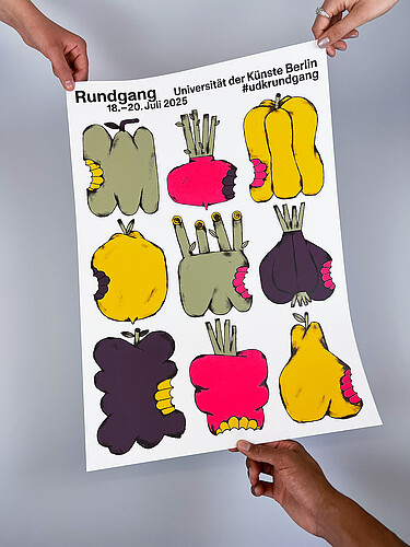 Zum Rundgang 2025 trägt die UdK Berlin wieder Farbe. Und dieses Plakat bringt das volle Aroma mit: das offizielle Rundgang-Plakat 2025 von Sina Schlerf als hochwertiger Siebdruck im A2-Format.